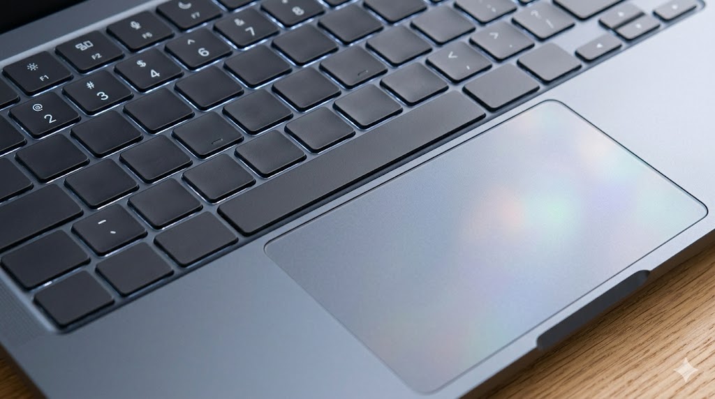 Etter noen år med utfordringer har Apple landet på Magic Keyboard for macbook air, som bruker en stabil saksemekanisme. Dette tastaturet gir en behagelig tastevandring og en taktil respons som gjør det mulig å skrive lange tekster uten å bli sliten i fingrene. Ved siden av tastaturet finner vi Force Touch-styreflaten, som av mange regnes som bransjens beste. Den er stor, presis og reagerer på trykk over hele flaten, noe som gir en intuitiv navigasjon i macOS uten behov for en ekstern mus.